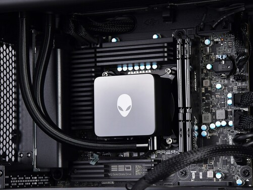 CPU散热器水泵上特别定制了外星人头像logo,开机后会呈现白色背光。内存没有LED灯带,因为它使用的是金士顿倍受好评的FuryBeast内存条,稳定性和兼容性绝佳。