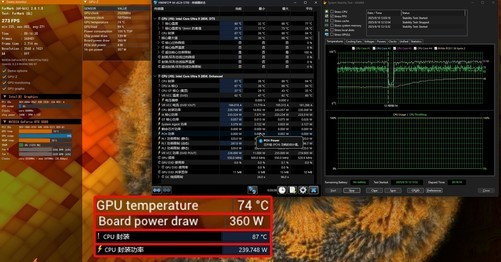 AIDA64+FurmarkCPU+GPU双烤机测试中,CPU封装温度仅为87℃,封装功率239.7W;显卡总功率360W,温度仅74℃,两大核心硬件总功耗释放高达600W的情况下,温度都能压到90℃以内,说明Area-51的散热系统确实相当给力。实际体验下来,在日常应用中这款产品的稳定性极高,而且风扇噪音非常小。