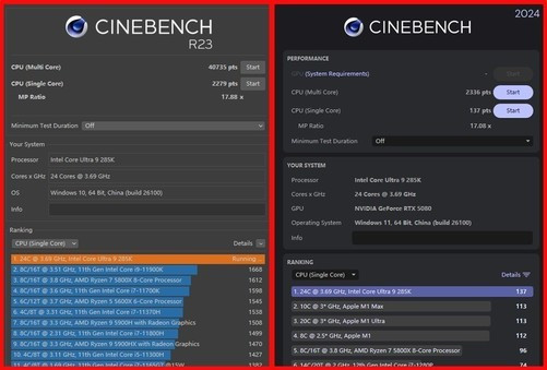 CINEBENCHR23以及2024测试标准,前者单核得分2279,多核得分40735;后者单核得分137,多核得分2336,也基本都达到了未超频状态下的最高性能跑分范围,所以Area-51的散热调校还是相当让人放心的。